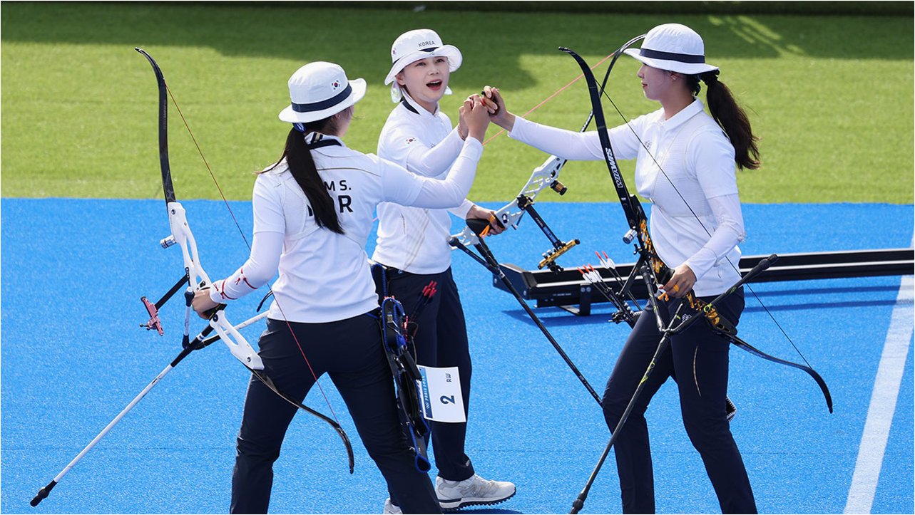 A.한국 여자 양궁팀은 이번 대회에서 금·은·동메달 싹쓸이를 목표로 했으나, 임시현 선수의 탈락으로 인해 목표 달성에 실패했습니다.