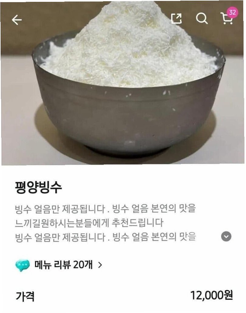 최근 온라인에서 '평양빙수'라는 메뉴를 둘러싸고 갑론을박이 벌어졌습니다. 팥, 과일, 떡 등의 토핑 없이 우유 얼음만 담긴 이 빙수의 가격은 1만 2천 원으로, 일부 소비자들은 높은 가격에 불만을 제기했습니다. 한 누리꾼은 배달 앱에 올라온 빙수 사진을 SNS에 올리며 불만을 제기했고, 게시글은 21만 회 이상 조회되며 화제가 됐습니다.
