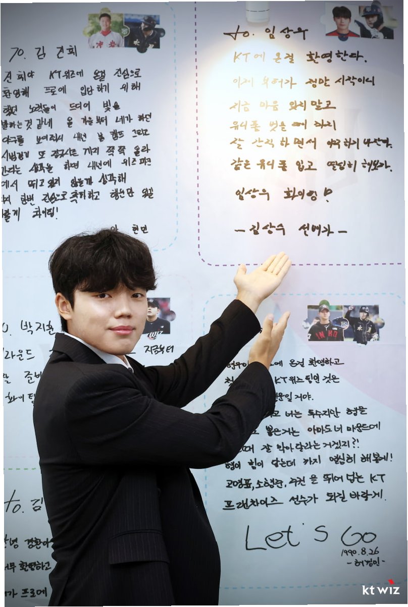 임상우 선수는 정근우, 김재호, 류현인 등 '불꽃 야구' 선배들로부터 응원의 메시지를 받았습니다. 특히, 롤모델인 김상수 선수에게 프로에서 오랫동안 1군에서 활약하는 비결과 꿀팁을 배우고 싶다는 바람을 드러냈습니다. 임상우 선수는 KT 올해 신인 중 유일한 4년제 대학 지명자로서, 팀에 꼭 필요한 선수가 되겠다는 굳은 의지를 밝혔습니다.