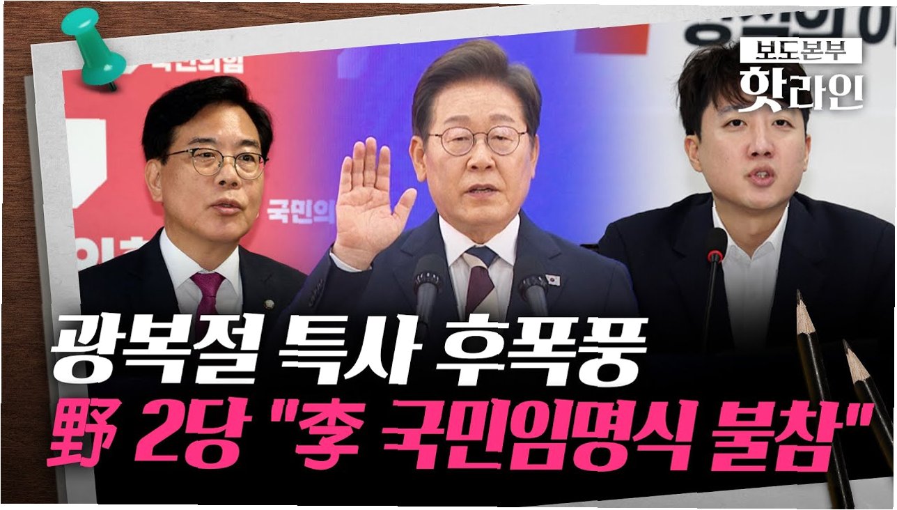보수 정당들과 개혁신당 역시 국민임명식에 불참하기로 결정했습니다. 80주년 광복절의 취지와는 별개로, 조국 전 조국혁신당 대표와 윤미향 전 더불어민주당 의원의 특별사면·복권에 대한 반발의 의미도 담겨 있는 것으로 분석됩니다.