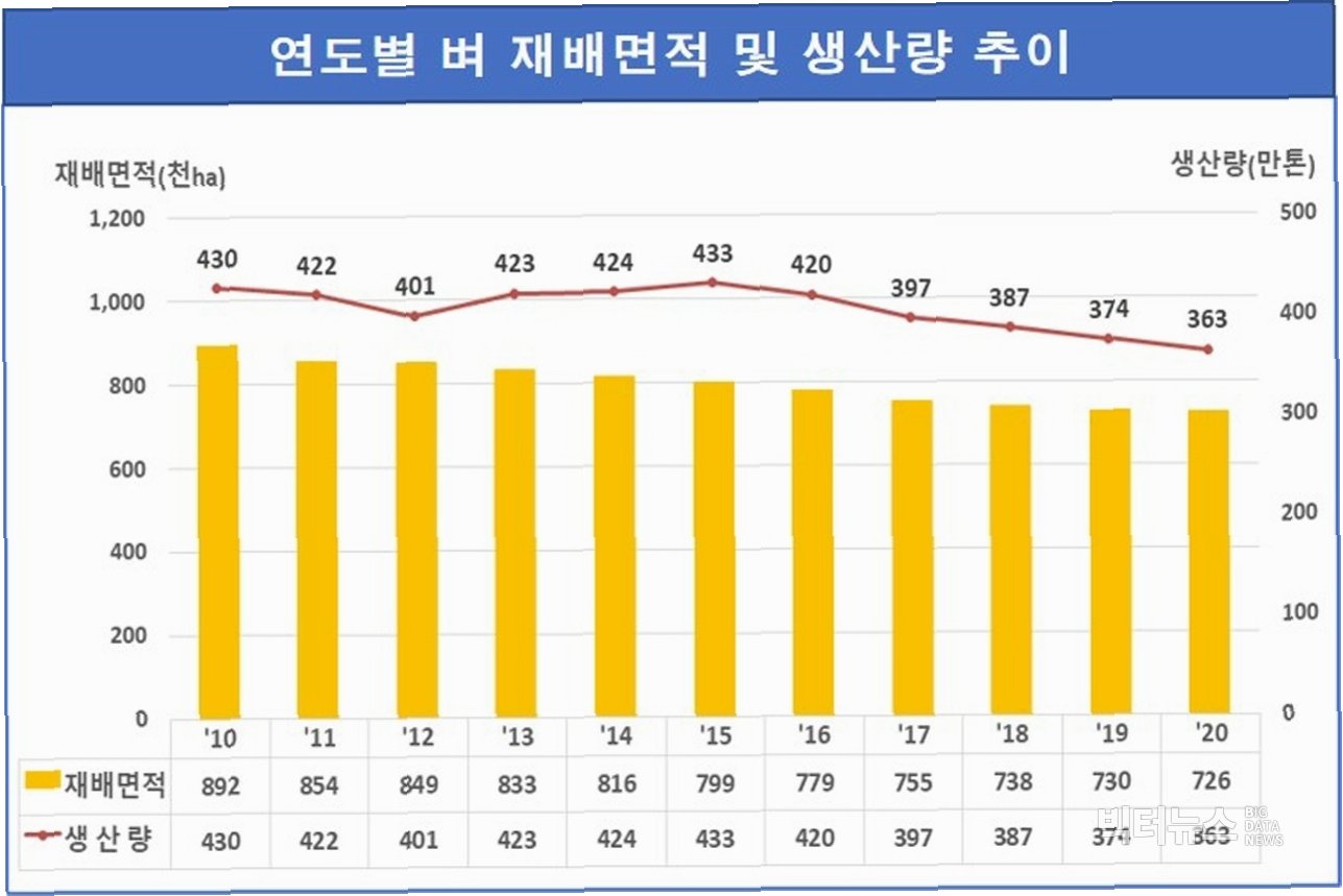 생산단수 증가에도 불구하고… 재배면적 감소의 그림자