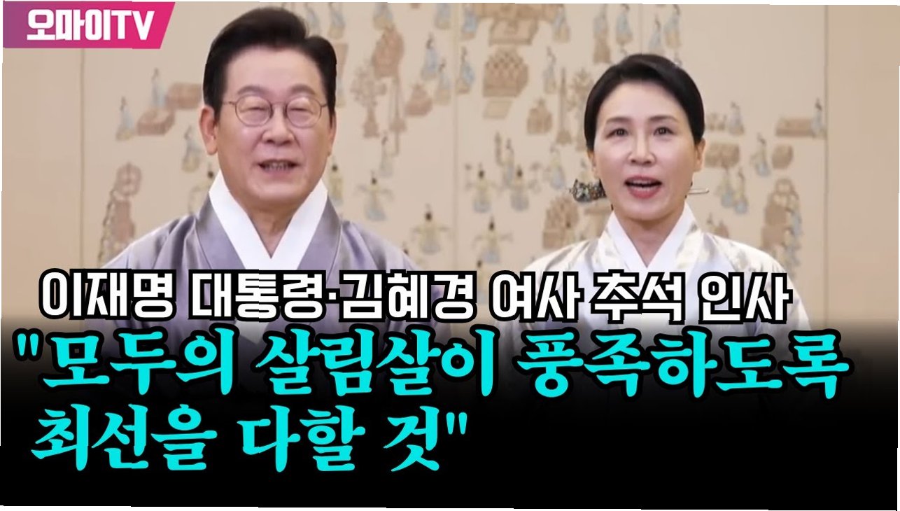 이재명 대통령과 김혜경 여사가 추석 연휴를 맞아 국민들에게 따뜻한 명절 인사를 전했습니다. 4일 공개된 영상 메시지에서 두 사람은 연보랏빛 한복을 곱게 차려입고, 다가오는 한가위에 대한 기대와 희망을 이야기했습니다. 특히, 이재명 대통령은 민생의 어려움에 대한 깊은 공감을 표현하며, 국민들의 삶을 개선하기 위한 굳은 의지를 내비쳤습니다. 이번 추석 인사는 긍정적인 메시지를 전달하며, 국민들에게 위로와 격려를 건네는 따뜻한 시간이 되었습니다.