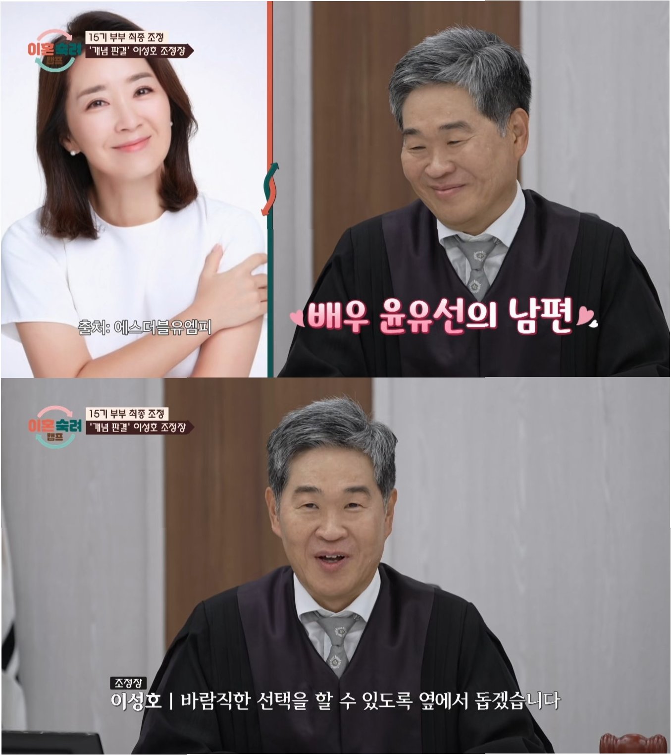 배우 윤유선의 남편이자 판사 출신 이성호 변호사가 JTBC 예능 프로그램 '이혼숙려캠프'의 조정장으로 첫선을 보였습니다. 이 소식은 많은 시청자들의 관심을 받으며, 그의 새로운 역할에 대한 기대감을 높였습니다. 이성호 변호사는 27년간 판사로 재직하며 다양한 사건을 다뤄왔으며, 특히 '어금니 아빠' 사건 담당 판사로도 널리 알려져 있습니다. 이러한 경험을 바탕으로, 그는 이혼 위기에 놓인 부부들의 갈등 해결을 돕는 조정자로서의 역할을 수행할 예정입니다. 그의 합류는 프로그램에 새로운 활력을 불어넣고, 시청자들에게 더욱 깊이 있는 공감과 조언을 제공할 것으로 예상됩니다.