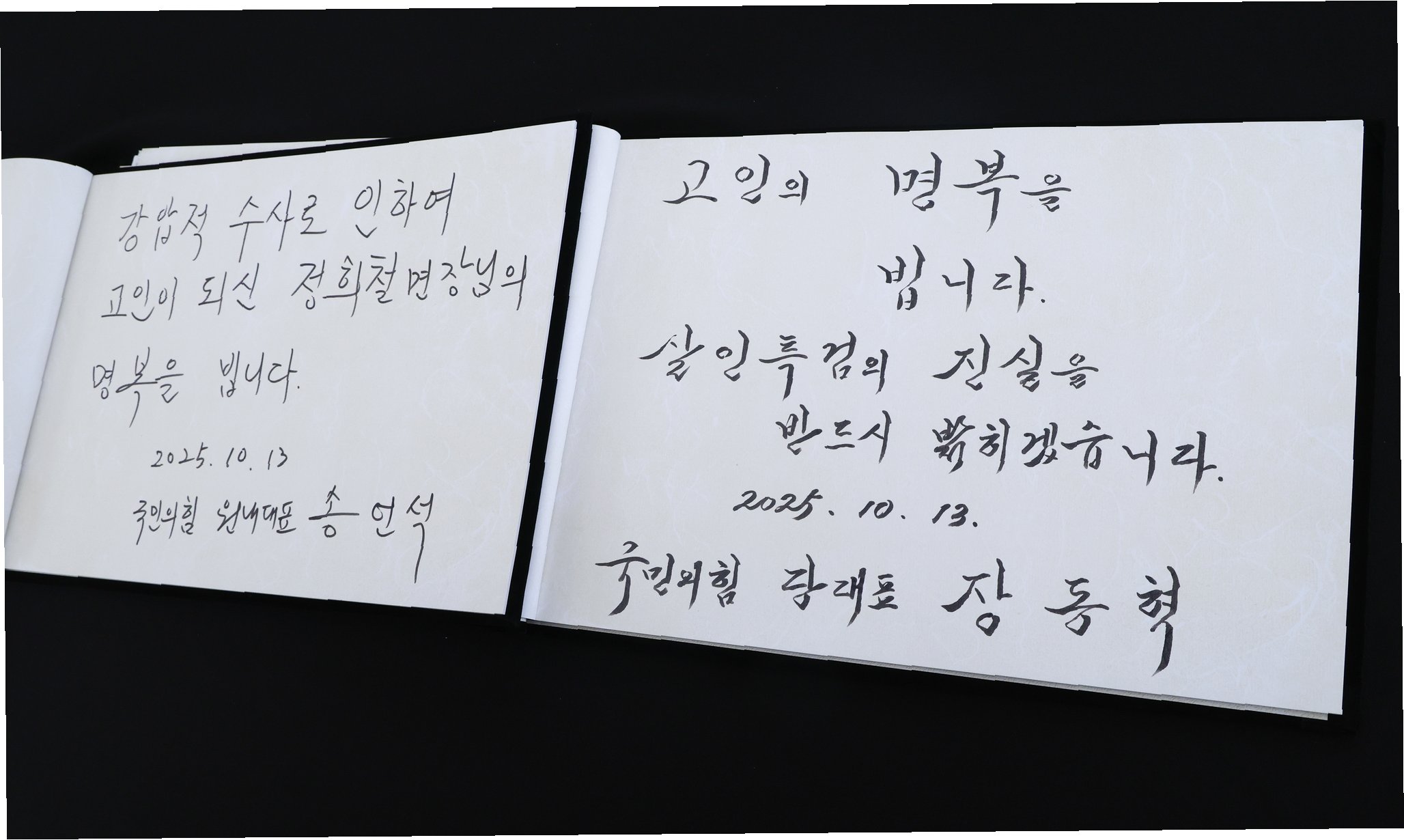 국민의힘은 이번 사건을 '정치 권력의 폭주', '사법 권력의 남용'으로 규정하며, 민중기 특검을 향한 비판의 목소리를 높이고 있습니다. 장동혁 대표는 민 특검을 국정감사장에 출석시키겠다고 밝혔으며, 의원총회를 통해 '민중기 특검의 폭력 수사에 대한 특검법'을 당론으로 발의하기로 결정했습니다. 송언석 원내대표는 '특검을 특검하는 것밖에 없다'며, 사건의 진실 규명을 위한 노력을 강조했습니다.