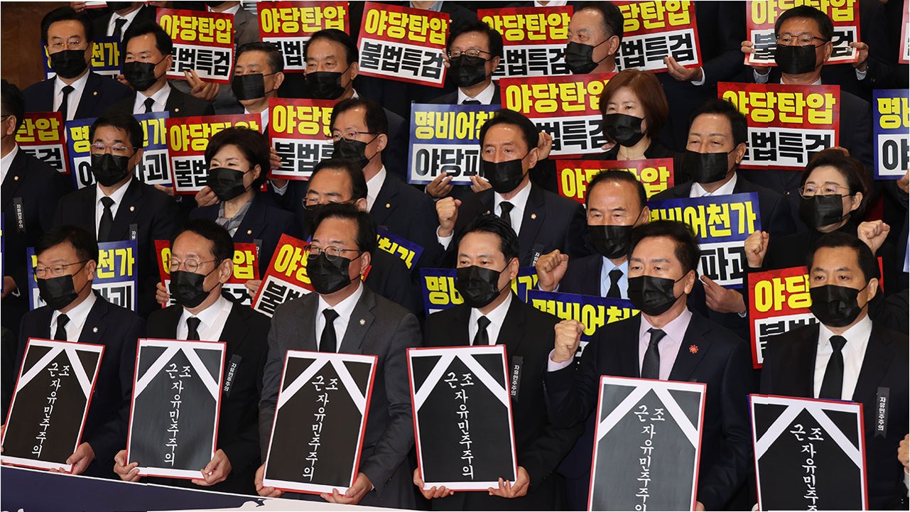 국민의힘, 로텐더홀 침묵 시위로 강력한 항의