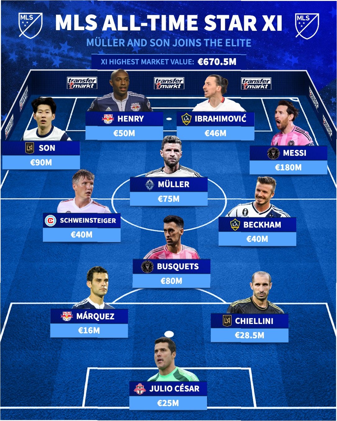 MLS 사무국은 베스트11이 7개국과 9개 구단을 대표하는 선수들로 구성되었다고 밝혔습니다. 공격진에는 손흥민의 동료 드니 부앙가를 비롯해 안데르스 드라이어, 리오넬 메시가 이름을 올렸습니다. 특히 부앙가는 3시즌 연속 베스트11에 선정되는 쾌거를 이루었습니다.