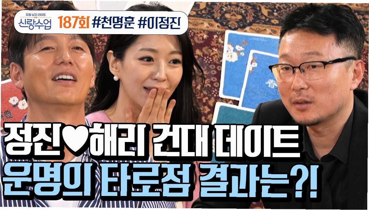 최근 방송된 '신랑수업'에서는 배우 이정진이 10살 연하의 소개팅녀 박해리와 함께 타로 카드 점을 받는 장면이 공개됐습니다. 두 사람의 궁합을 본 역술가는 "환상의 궁합이다. 서로 에너지를 주고받으면서 교류가 된다"면서 "속궁합도 엄청 좋다"고 언급했습니다. 이를 지켜보던 패널들은 "이보다 더 좋은 말이 있었을까?", "환장할 정도로 환상"이라며 기뻐했습니다. 제작진은 해당 발언을 그대로 내보내며 자막까지 덧붙였습니다.
