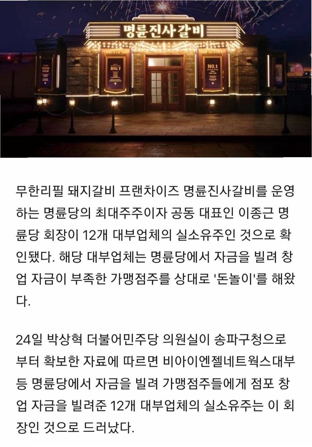 명륜진사갈비, 돈놀이 의혹으로 금융당국 조사 시작