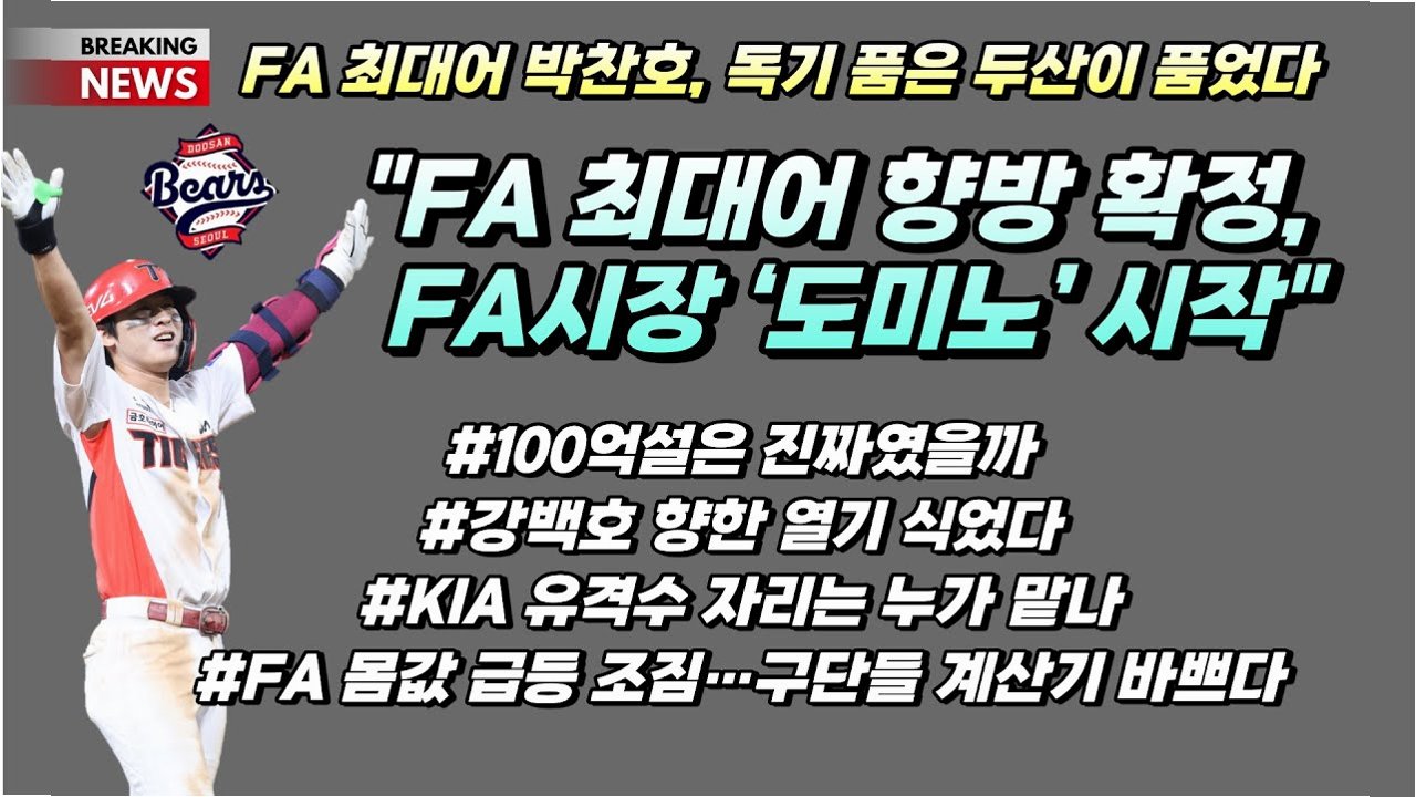 | 두산, FA 시장 '싹쓸이' 나선다! 박찬호 영입 임박, 김현수까지? (0) | 2025.11.14 |