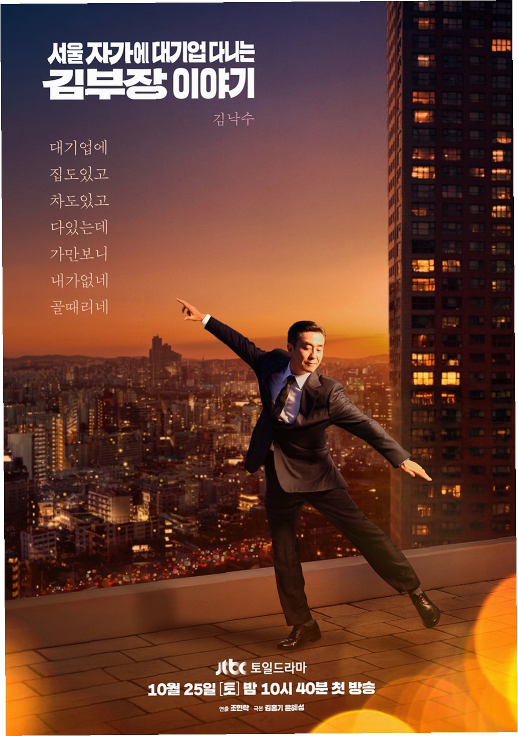 드라마 ‘서울 자가에 대기업 다니는 김부장 이야기’는 억대 연봉과 자가, 안정적인 직장에도 불구하고 씁쓸한 현실을 살아가는 김부장의 모습을 통해 우리 사회의 단면을 비춥니다. 과도한 경쟁, 불안정한 미래, 그리고 겉으로 보이는 화려함 속에 감춰진 고독함 등 현대 사회의 어두운 면을 드러내며, 성공과 행복의 진정한 의미에 대해 질문을 던집니다.