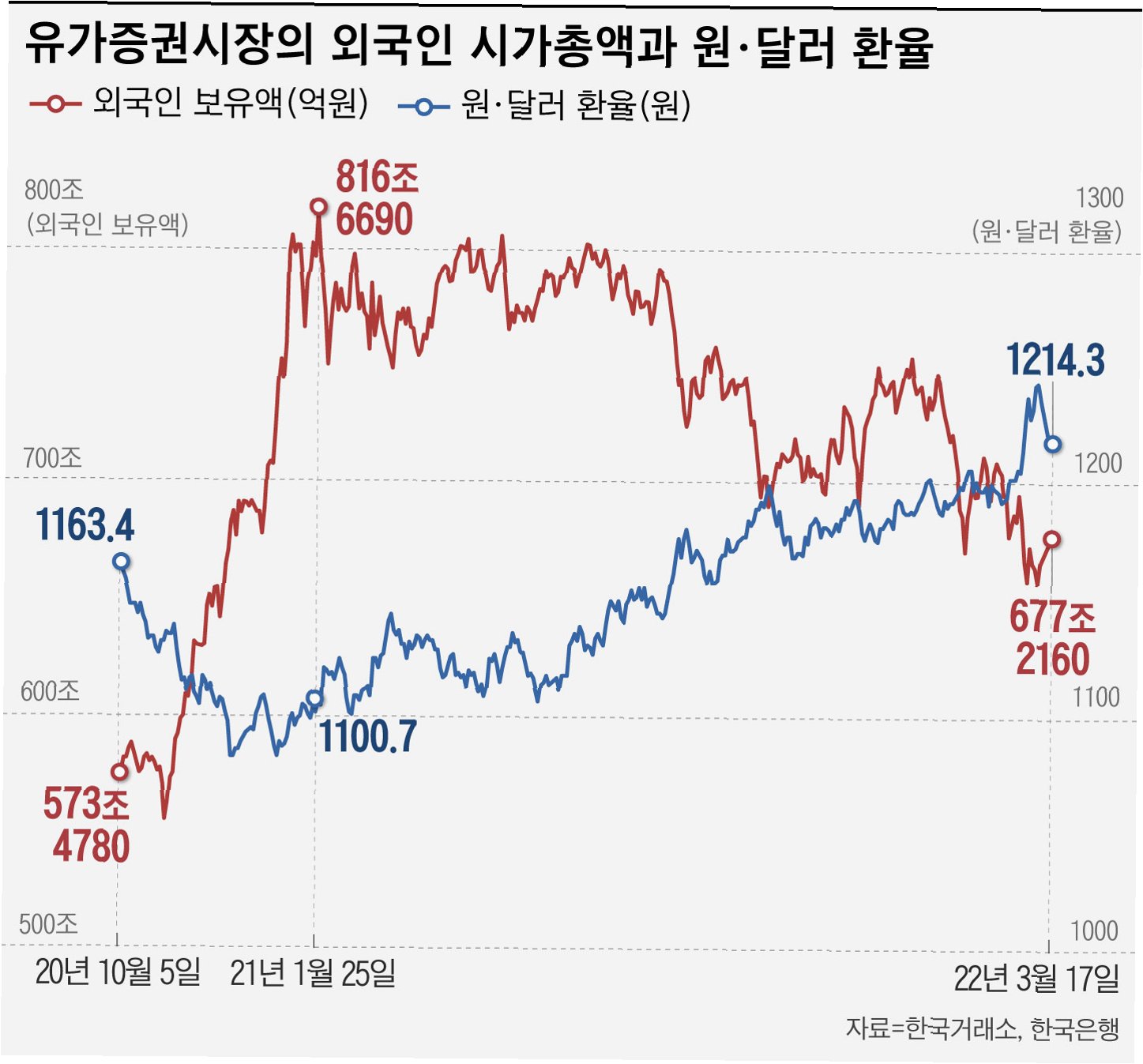 환율이 1470원대에서 ‘고공 행진’을 이어가는 가운데 지난달 원화의 실질 구매력이 글로벌 금융위기 이후 가장 낮은 수준까지 떨어진 것으로 나타났다. 상대적 구매력과 하락 폭 모두 주요국 통화 중 손꼽히게 약세가 두드러졌다. 민간이 보유한 해외 금융자산이 가파른 속도로 증가하면서 원화 약세를 구조적으로 고착화하고 있다는 평가가 나온다.