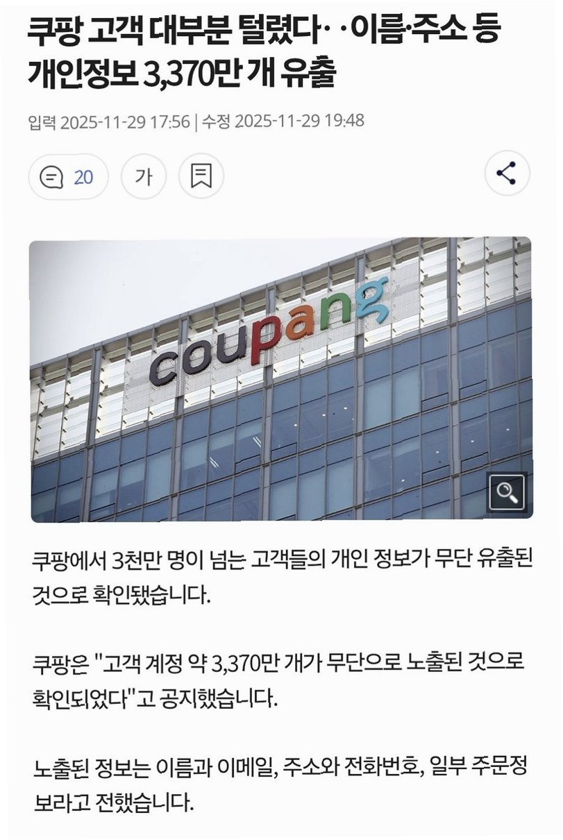 3400만 건 개인정보 유출, 쿠팡 사과문 논란으로 번져