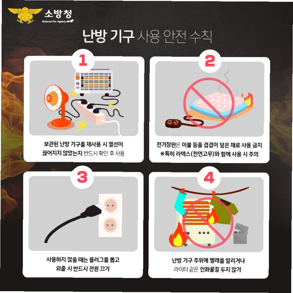 A.겨울이 아닌 계절에는 반드시 전원을 꺼두어 화재 위험을 예방해야 합니다.