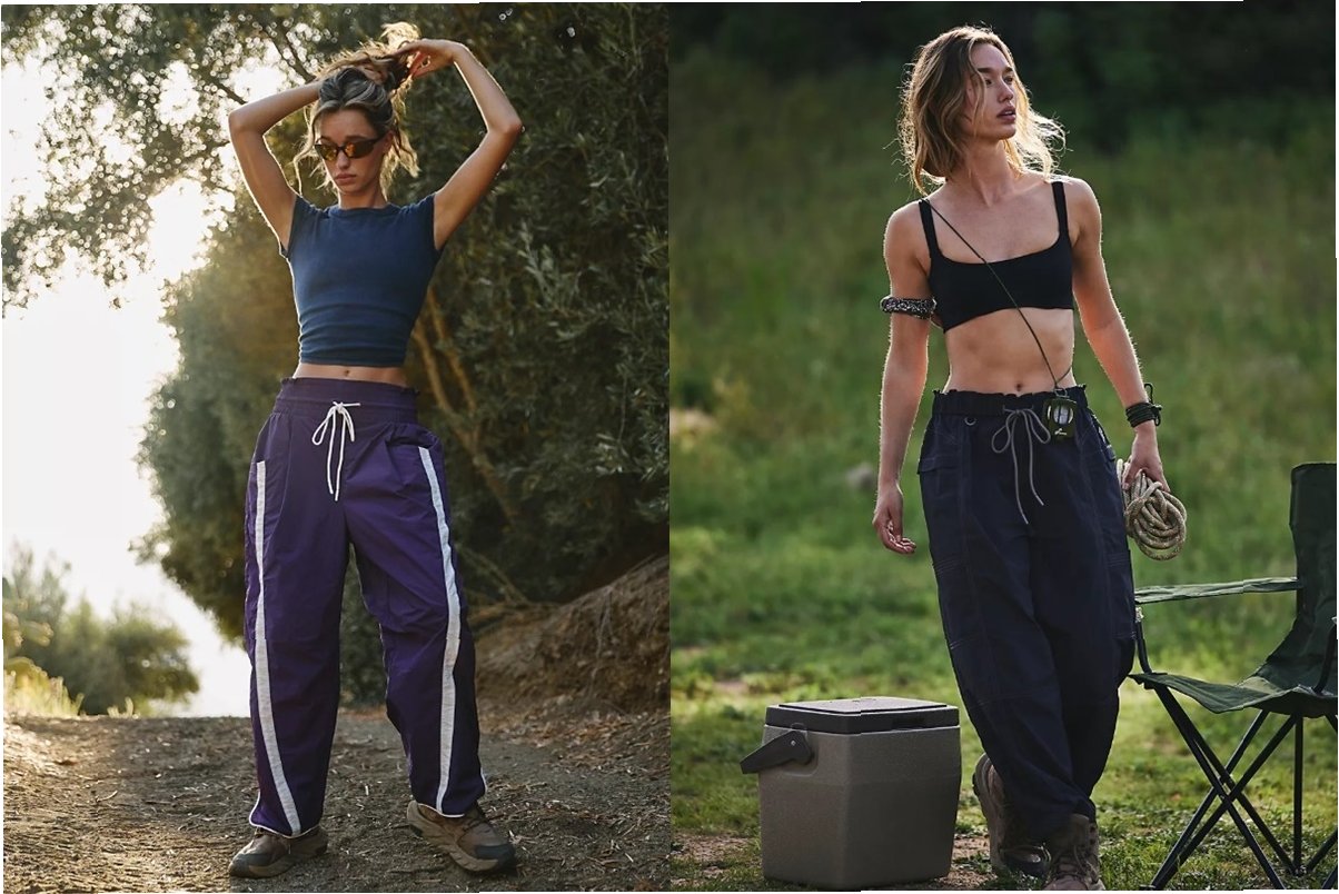 A.헐렁하고 바스락거리는 소재로, 크롭탑과 함께 매치하여 편안하면서도 스타일리시한 룩을 연출합니다.