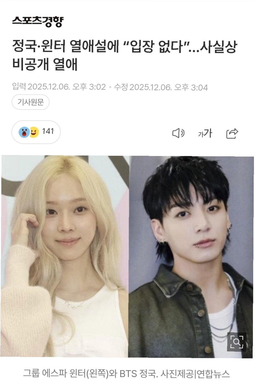 Q.윈터와 정국의 열애설, 사실인가요?