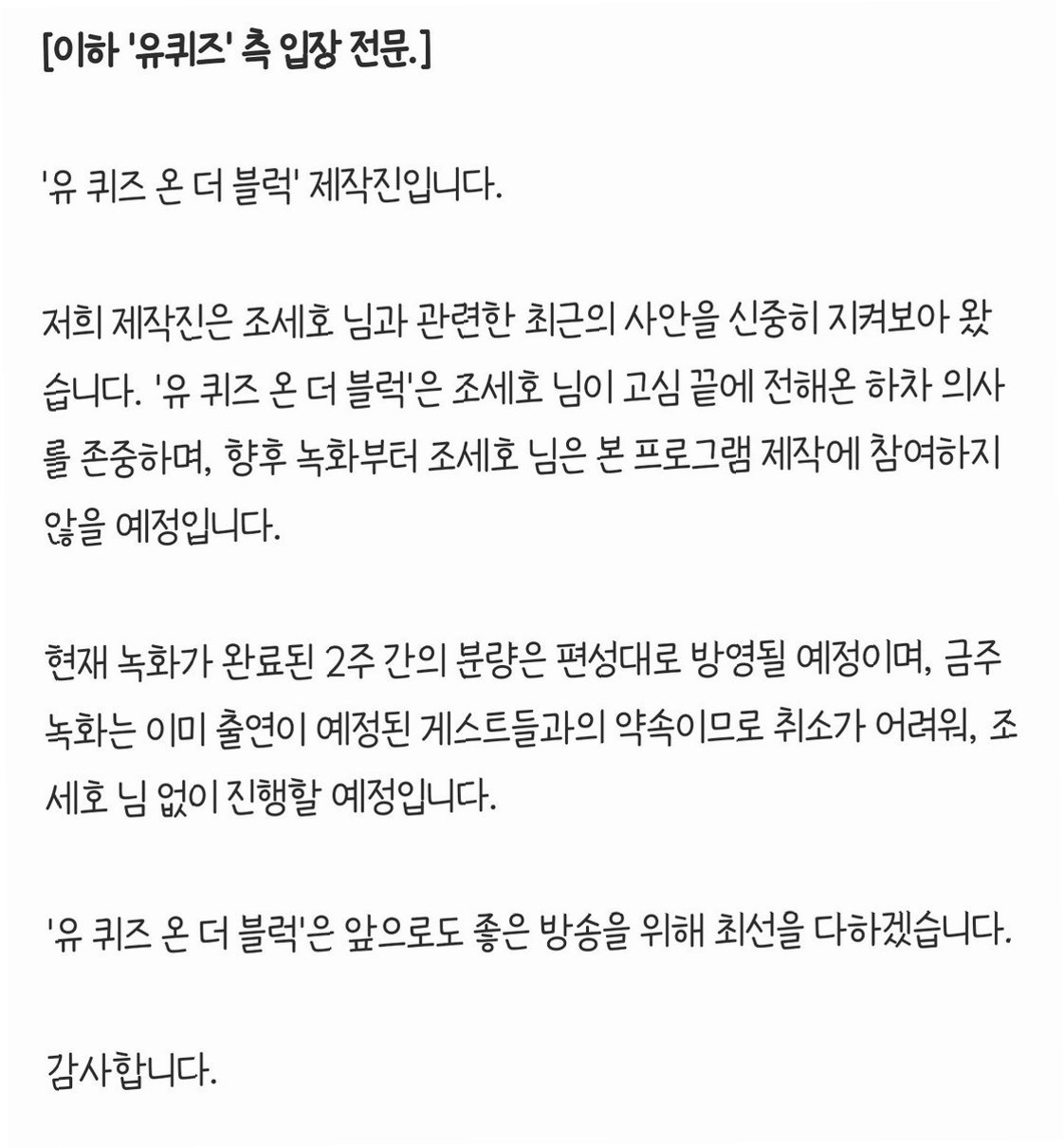 Q.조세호는 왜 '유퀴즈'에서 하차하게 되었나요?