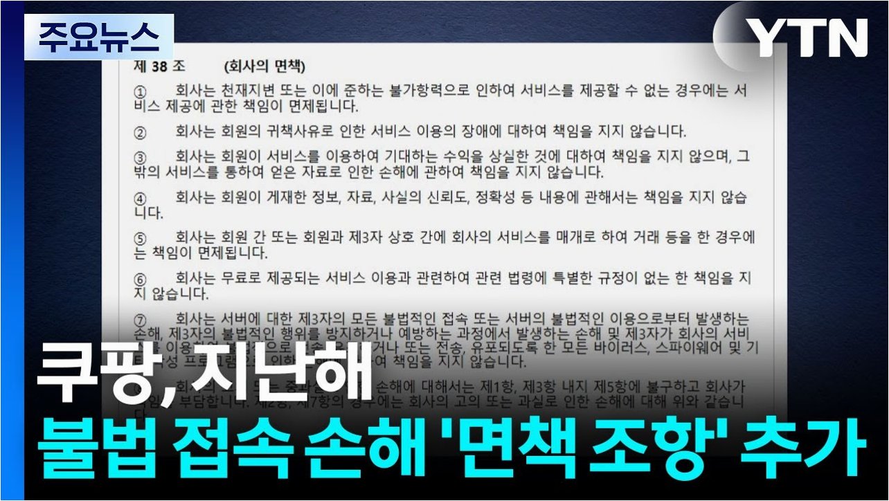A.쿠팡의 제3자 불법 접속으로 인한 손해에 대한 면책 조항이 개인정보보호법 위반 소지가 있다는 판단을 받았기 때문입니다.