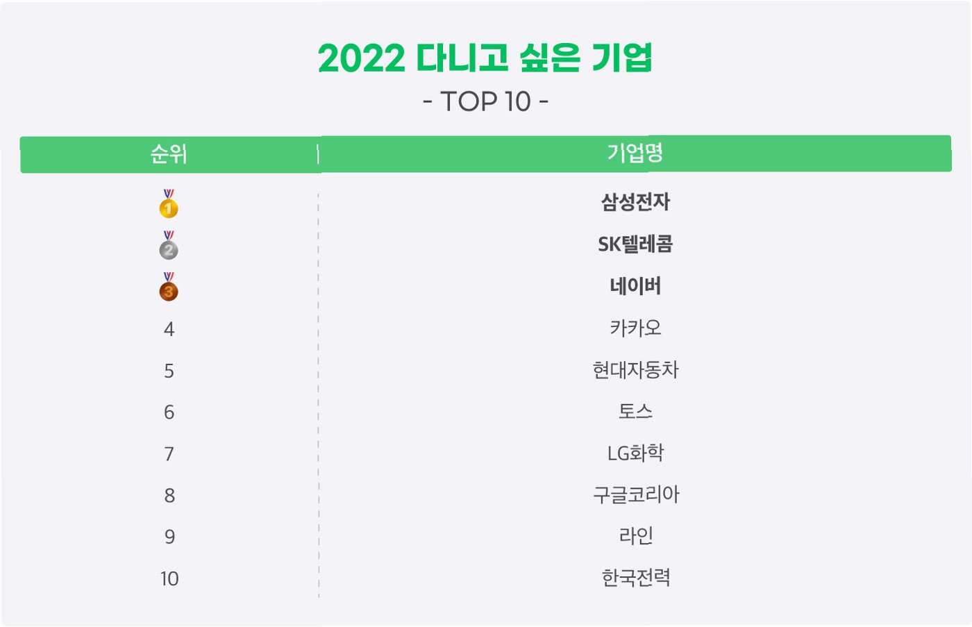 작년 1위였던 SK하이닉스가 2위로, 네이버가 3위로 그 뒤를 이었습니다. 현대자동차와 삼성전자가 공동 4위를 기록하며 치열한 경쟁을 보여주었습니다. CJ제일제당이 6위를 차지했고, 카카오페이와 아모레퍼시픽이 공동 7위에 오르며 새로운 강자로 떠올랐습니다. 삼성바이오로직스와 한화에어로스페이스도 10위 안에 이름을 올리며, 다양한 산업군에서 매력적인 기업들이 두각을 나타냈습니다. 이러한 결과는 기업 선택 기준의 변화, 즉 단순히 연봉이나 안정성을 넘어, 개인의 가치관과 부합하는 기업을 선호하는 경향을 보여줍니다.