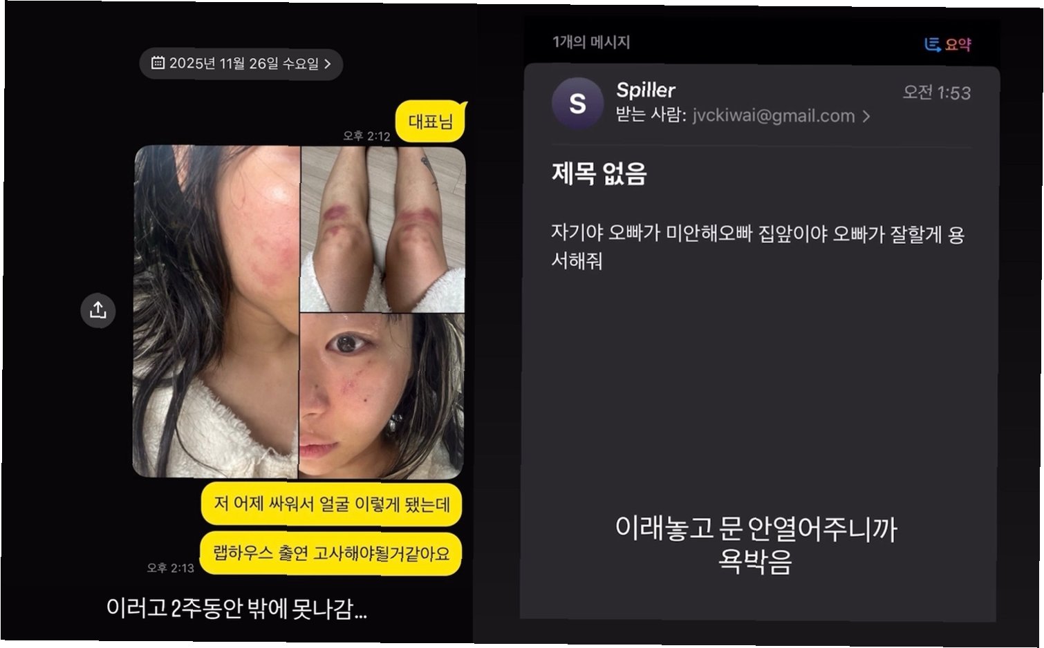 재키와이는 SNS를 통해 폭력 피해 사실을 공개한 이유에 대해, 완전히 헤어지기 위해 어쩔 수 없었다고 설명했습니다. 방달은 재키와이가 집 밖으로 나가지 못하도록 감금했으며, 심지어 집 문을 두드리고 비밀번호를 누르는 등 지속적인 괴롭힘을 가했습니다. 재키와이는 방달이 자신을 감금하고 폭행하는 행위가 반복되었다고 주장하며, 부엌칼을 꺼내려 하고 목을 졸랐다는 충격적인 증언을 했습니다. 이러한 재키와이의 구체적인 설명은 사건의 심각성을 더욱 드러내고 있습니다.
