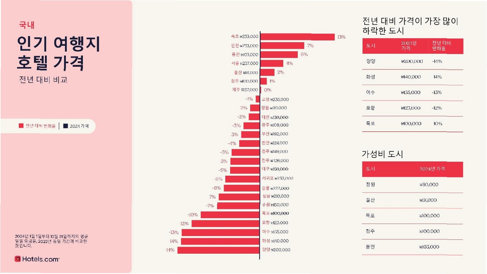 극적인 하락: 숙박비, 절반 이하로 뚝
