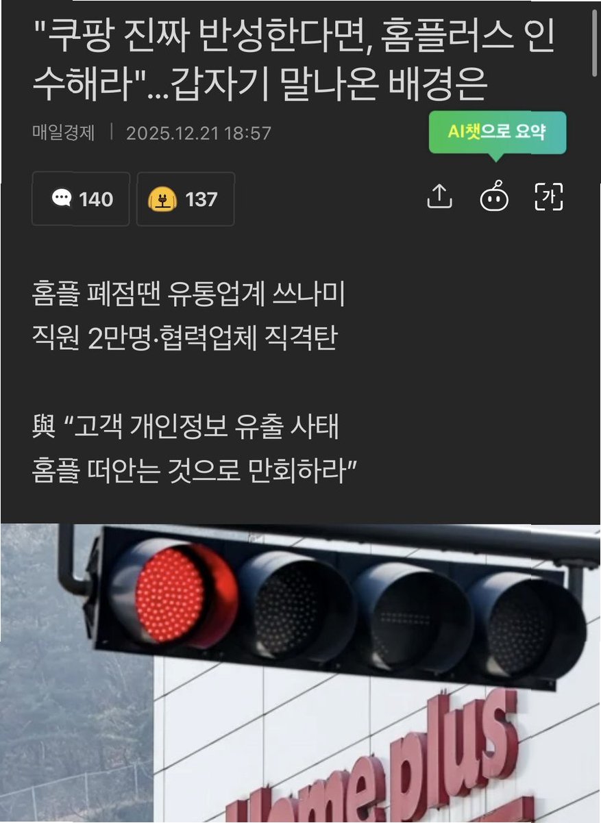 홈플러스의 회생 위기가 심화되는 가운데, 대규모 개인정보 유출 책임을 진 쿠팡이 사회적 책임 차원에서 홈플러스 인수에 나서야 한다는 정치권·시민사회의 요구가 커지고 있습니다. 홈플러스는 전국 단위 대형마트로 2만여 명을 직접 고용하며 협력업체의 실적에도 큰 영향을 주는 만큼, 폐점 시 사회적 파장이 클 것으로 예상됩니다.