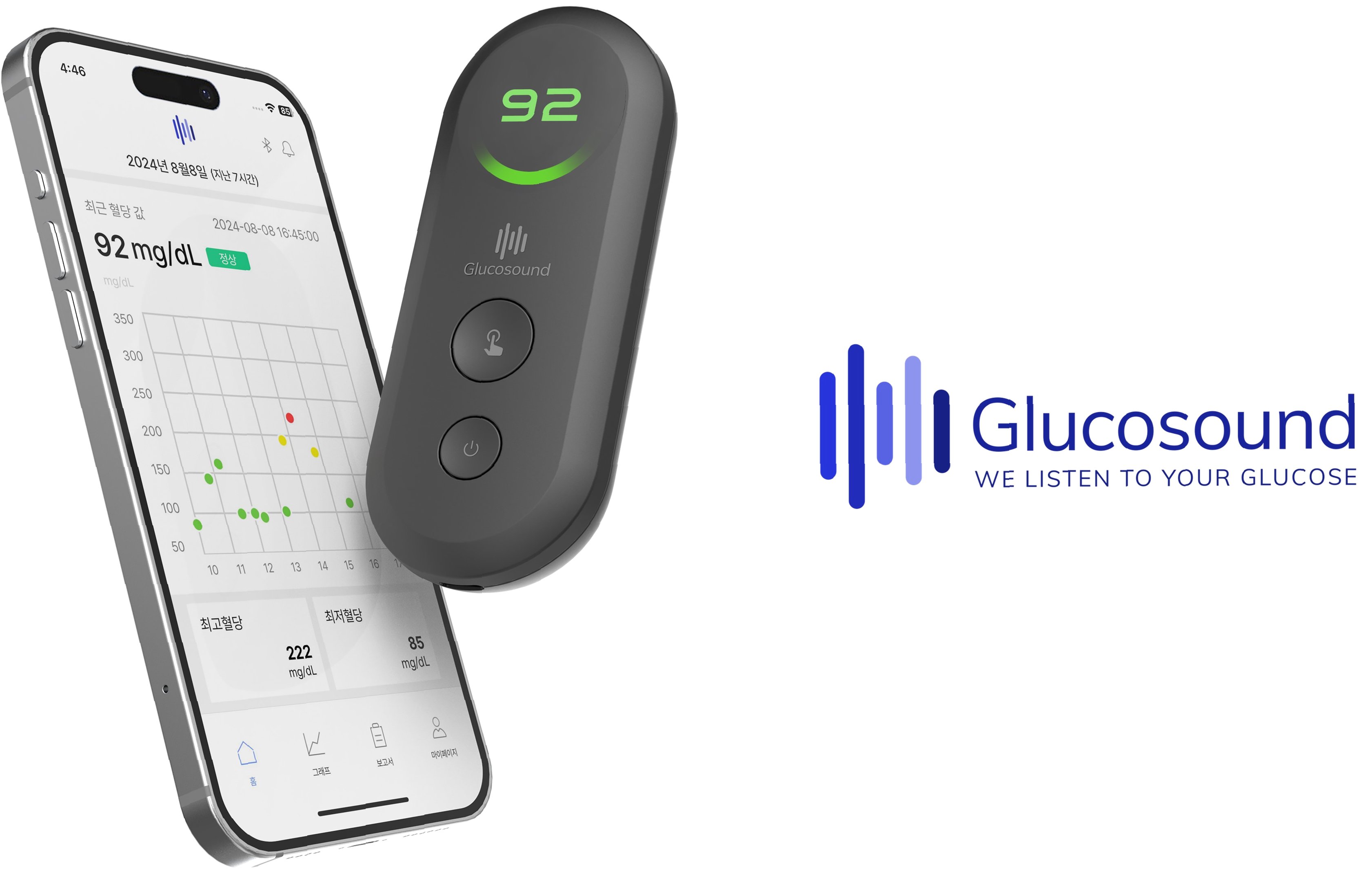 뷰텔의 비침습 혈당 관리기기 '해피존'은 MARD(평균 절대 상대 차이) 9.0% 수준을 확보하며 높은 정확도를 입증했다. MARD는 실제 정맥혈 혈액분석기와의 오차율을 나타내며, 수치가 낮을수록 정밀함을 의미한다. 일반적으로 10% 미만이면 높은 정확도로 평가받는다. 뷰텔은 빛을 쏘는 수준을 넘어, 혈류의 흐름을 읽는 PPG(광혈류량 측정) 기술과 분광학 기술을 동시에 적용하여 정확한 혈당 데이터를 추출한다. 8년간 축적된 알고리즘을 통해 개인별 신체적 노이즈를 실시간으로 필터링하여 마치 채혈을 한 것과 같은 고순도의 혈당 데이터를 추출한다.