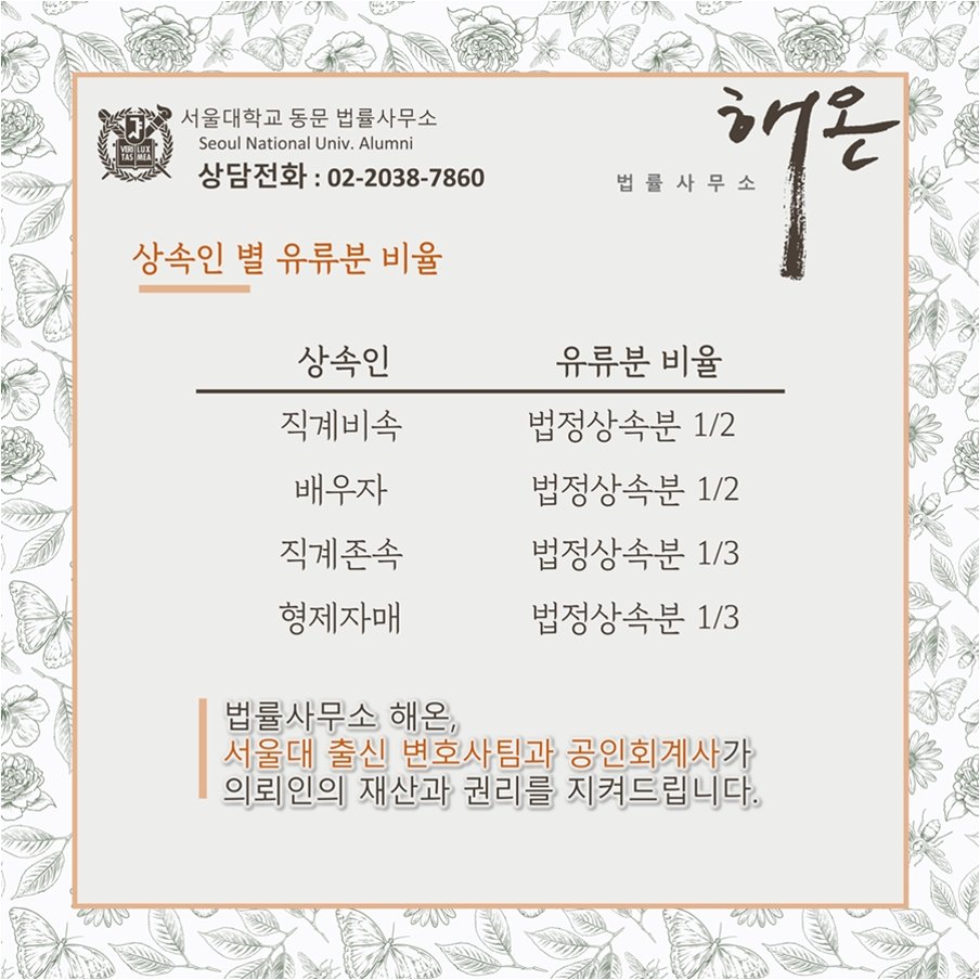유류분을 알기 위해서는 법정상속분을 이해해야 합니다. A씨의 경우, 법정 상속인은 자녀 2명과 A씨, 총 3명입니다. 법정상속분은 자녀 1, 배우자 1.5의 비율로, A씨는 3/7의 법정상속분을 가집니다. 이 법정상속분을 다시 반으로 나누면 A씨의 유류분은 3/14가 됩니다. 이는 남편이 생전에 증여한 재산 중 일부를 되찾아올 수 있다는 것을 의미합니다.