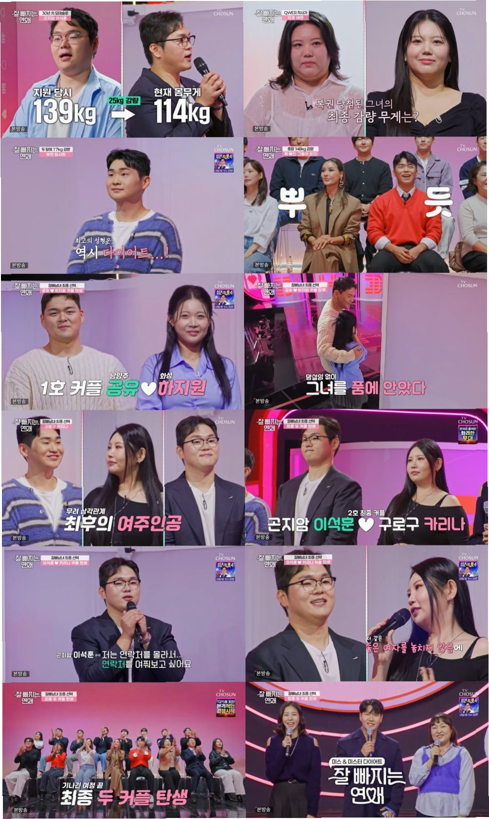 TV 조선 '잘 빠지는 연애'가 지난 24일 방송된 8회를 끝으로, 두 달간의 뜨거운 러브 다이어트 여정에 마침표를 찍었다. 다이어트와 사랑, 두 가지 미션을 모두 완주한 잘빼남녀 9인의 최종 결과가 공개됐다. 마지막까지 웃음과 감동, 그리고 누구도 예상하지 못한 반전이 이어지며 시청자들의 몰입을 끌어올렸다.