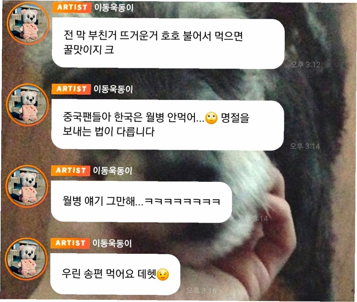 A.중국 팬들과의 소통에서 한국의 명절 음식 문화를 언급하며, 사용한 이모티콘과 표현 방식이 오해를 불러일으켰기 때문입니다.
