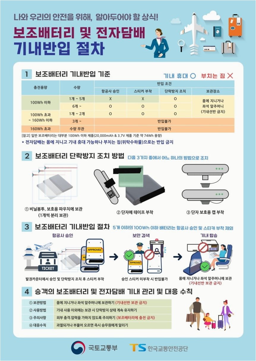 보조배터리 반입, 규정은 그대로 유지