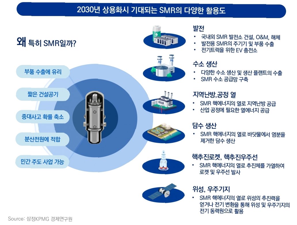 A.SMR(Small Modular Reactor)은 기존 원전보다 출력이 낮고 모듈화된 혁신형 원자로를 의미합니다. 안전성과 경제성을 높인 차세대 원전 기술로 주목받고 있습니다.