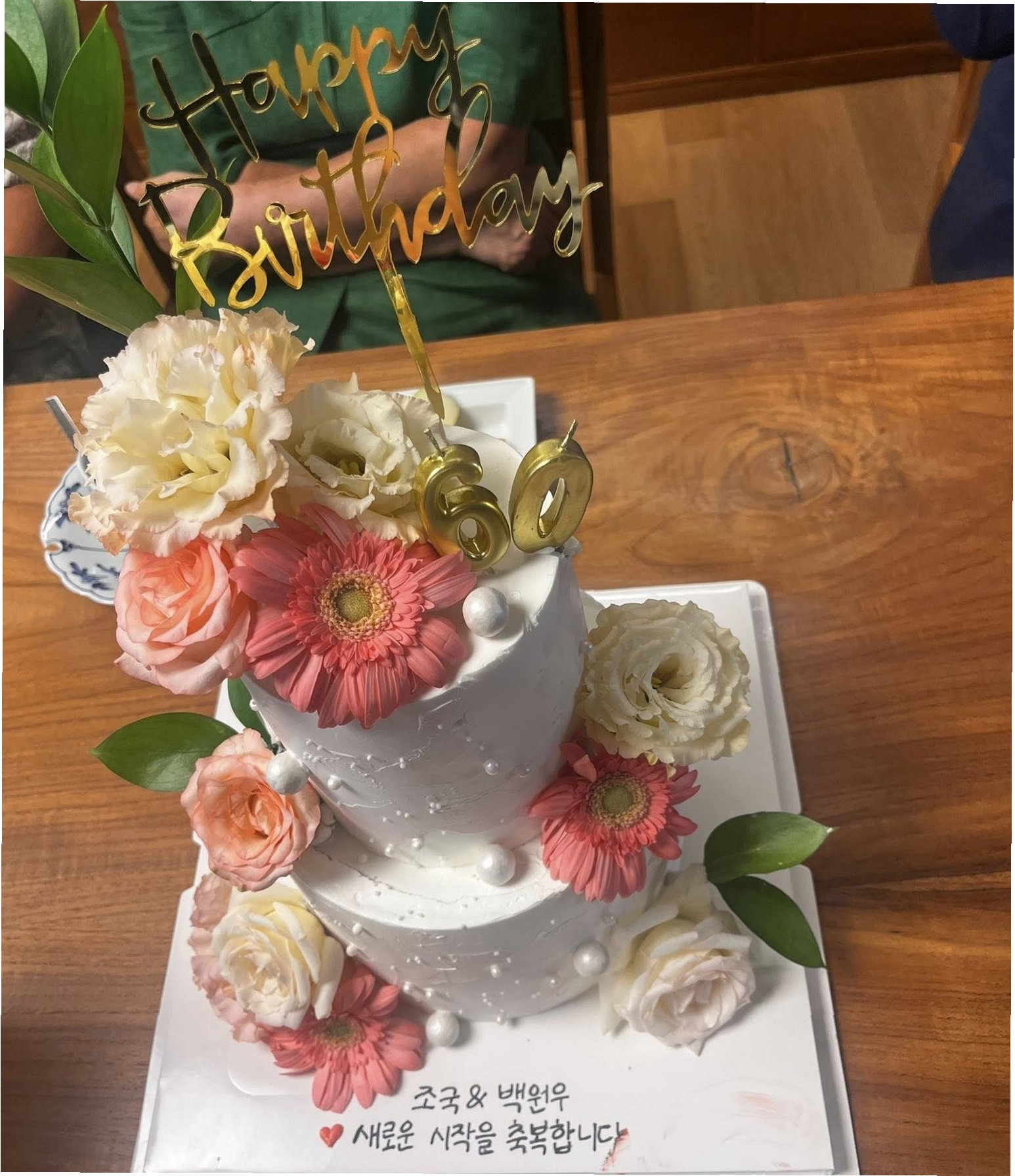 환갑잔치는 문재인 전 대통령이 머무는 경남 양산 평산마을에서 열렸습니다. 황현선 총장이 공개한 사진에는 조국 원장과 백원우 전 비서관이 케이크를 앞에 두고 환하게 웃는 모습이 담겨 있습니다. 케이크에는 ‘Happy Birthday’ 문구와 함께 ‘조국&백원우 새로운 시작을 축복합니다’라는 문구가 새겨져, 두 사람의 앞날을 응원하는 따뜻한 마음을 표현했습니다.