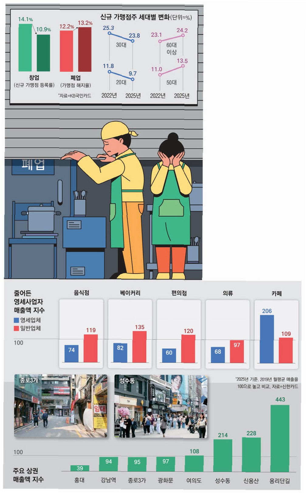 A.2030세대는 노래방, PC방, 영화관 등 유흥 및 여가 업종의 주요 소비층입니다. 이들의 소비가 줄면 해당 업종의 매출이 급감하고, 이는 곧 폐업률 증가로 이어집니다.