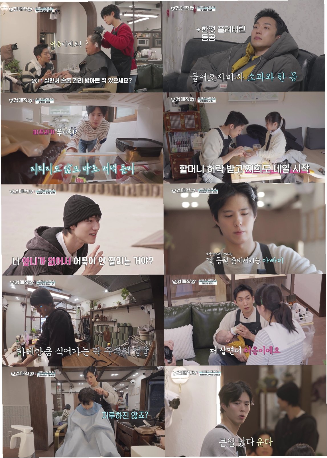 영업 첫날, 박보검은 마감 직전 방문한 손님을 위해 야간 근무를 자처했습니다. 섬세한 커트와 염색에 집중하는 박보검을 이상이와 곽동연이 정성스러운 네일 케어와 서비스로 도왔습니다. 늦은 시간까지 이어진 삼 형제의 온기 가득한 팀워크는 손님의 만족스러운 미소로 이어지며 보람찬 첫날 영업을 마무리했습니다.