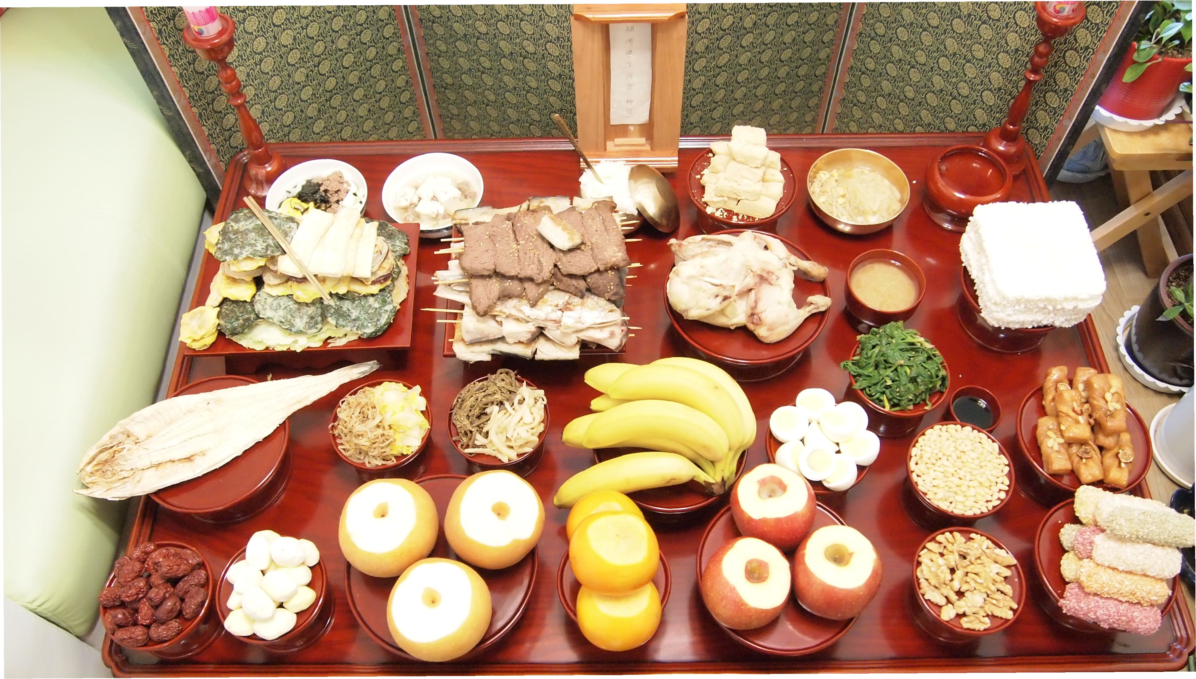A.전통적으로는 술, 차, 제철 과일 등이 기본이었으며, 시대에 따라 떡, 국수, 전, 육적 등이 추가되기도 했습니다. 하지만 가장 중요한 것은 조상께 감사하는 마음입니다.