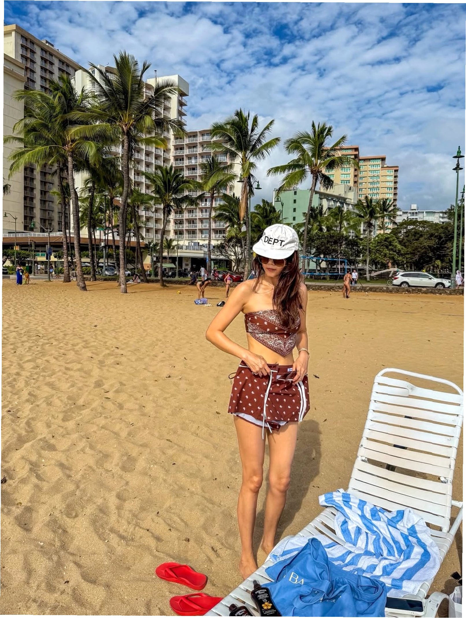 채정안은 하와이 해변에서 브라운 톤 비치룩과 캡, 선글라스를 매치한 스타일링으로 시선을 사로잡았습니다. 특히 군살 없이 탄탄한 몸매와 자연스러운 분위기는 많은 이들의 감탄을 자아냈습니다. 해변에서 일광욕을 즐기면서도 '하와이 날씨가 왜 이렇게 춥냐'고 너스레를 떨어 팬들의 공감을 얻기도 했습니다.