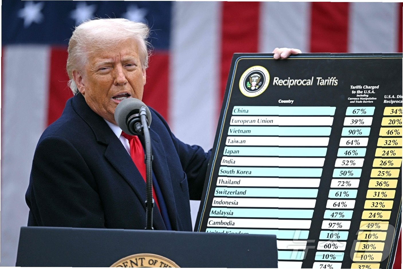 A.트럼프 행정부가 미국의 무역적자를 이유로 전 세계 무역 상대국에 부과한 10%의 기본 관세와 국가별 차등 세율을 더한 관세입니다.