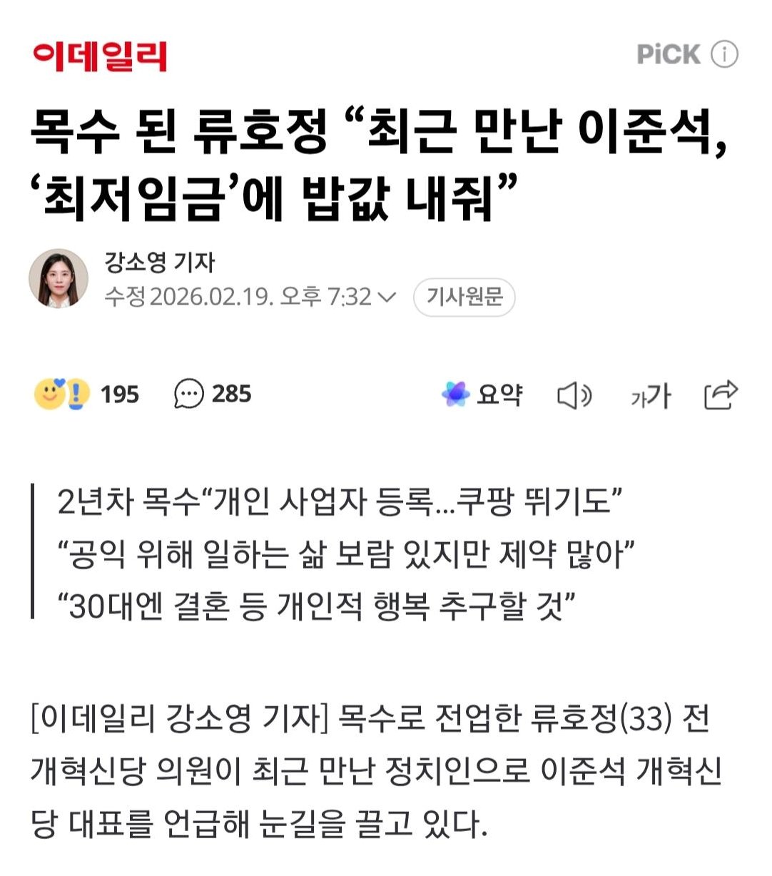목수 류호정, 이준석 대표와의 따뜻한 교류와 새로운 삶의 시작