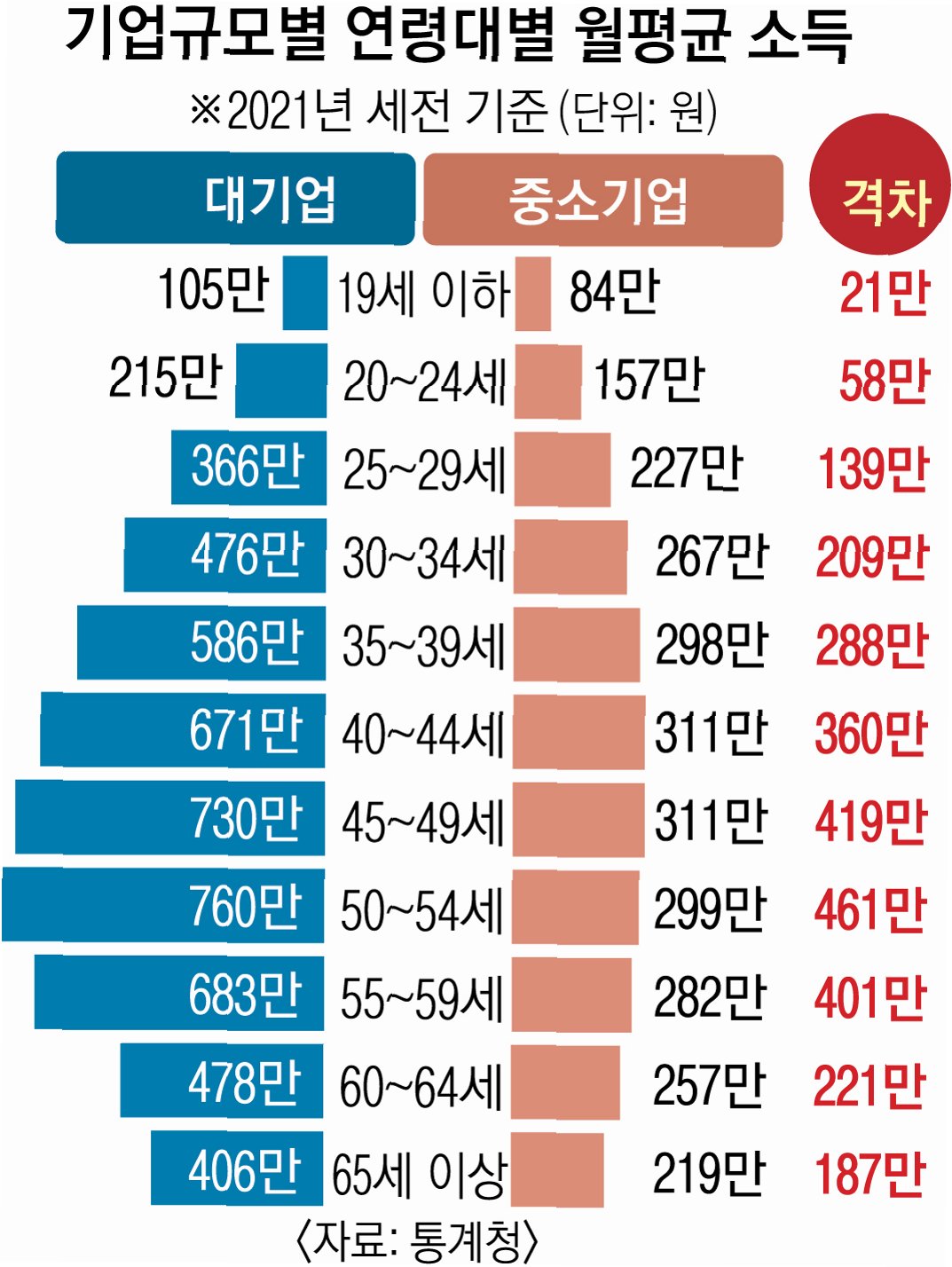 사상 최대! 대기업과 중소기업의 임금 격차
