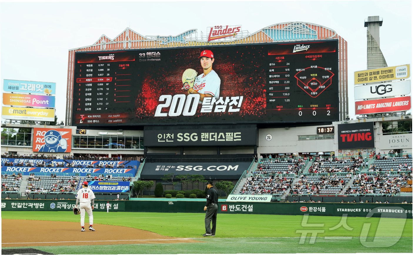 SSG 랜더스의 우완 투수 드류 앤더슨이 2025 시즌, 프로야구 역사에 길이 남을 200탈삼진 기록을 달성했습니다. 이는 단일 시즌 최소 이닝 기록으로, 앤더슨은 인천 SSG 랜더스필드에서 열린 KIA와의 경기에서 이 놀라운 업적을 이뤄냈습니다. 앤더슨은 코디 폰세에 이어 올 시즌 리그 두 번째로 200탈삼진 고지에 올랐습니다.