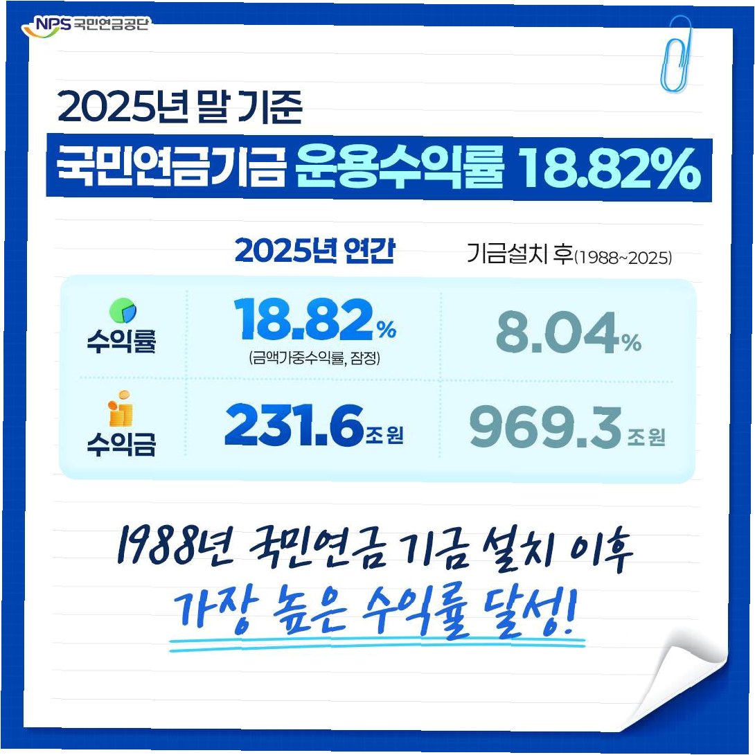 국민연금은 지난해 역대 최고인 18.82%의 수익률을 기록하며 231조 원을 벌어들였습니다. 기술주 중심의 투자와 철저한 리스크 관리, 인프라 개선이 주요 성공 요인으로 분석됩니다. 이는 국민의 노후를 더욱 든든하게 지켜줄 희망적인 소식입니다.