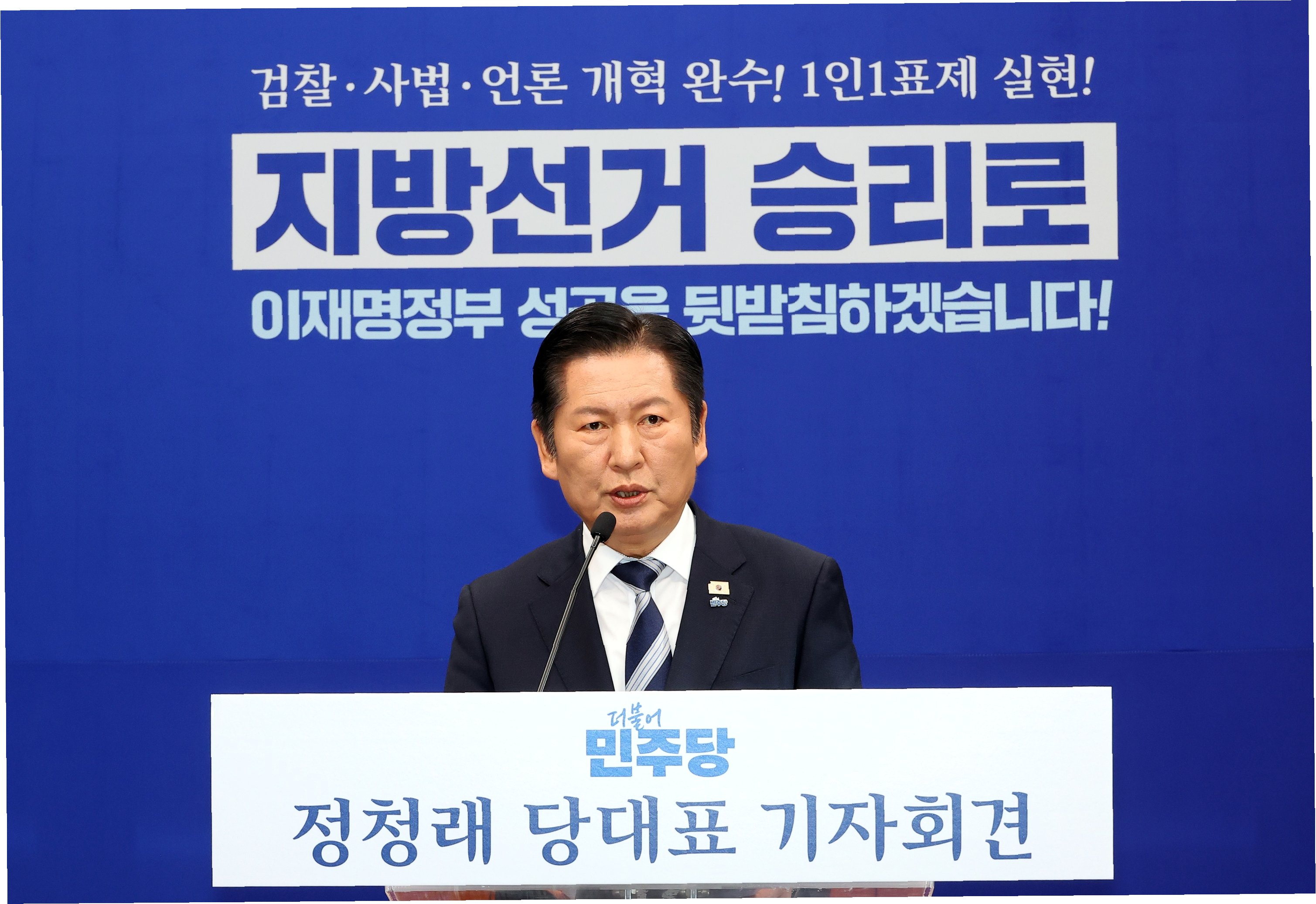 더불어민주당 정청래 대표가 6·3 지방선거 승리를 '지상 과제'로 선언하며 자신의 모든 것을 걸겠다고 밝혔습니다. 대표 취임 후 두 번째 기자회견에서 정 대표는 국민주권 이재명 정부의 성공을 위해 당원 주권 정당인 민주당의 승리가 필수적임을 강조했습니다. 이는 민주당이 처한 절박한 상황과 선거 승리에 대한 강한 의지를 보여줍니다.