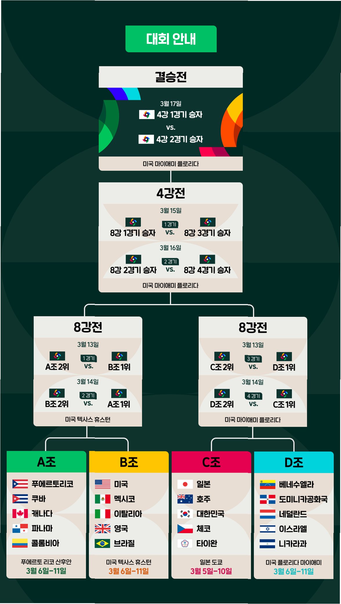 A.호주가 일본에 패하고 한국이 호주를 이길 경우, 한국, 대만, 호주가 2승 2패로 동률이 됩니다. 이때 세 팀 간의 맞대결 실점률을 따져 8강 진출팀이 결정되므로, 한국의 8강 진출은 경우의 수에 따라 달라집니다.