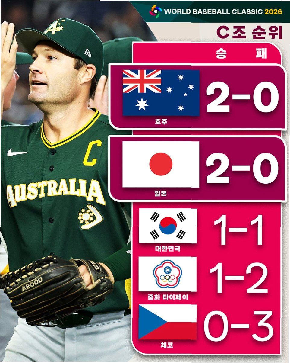 2026 월드베이스볼클래식(WBC) 대한민국 야구대표팀이 호주를 7-2로 꺾고 17년 만에 토너먼트 진출에 성공했습니다. 8강 진출을 위해선 호주를 상대로 2실점 이하, 최소 5점 차 이상 승리가 필요했던 까다로운 조건 속에서, 장단 10안타를 몰아치며 극적으로 조건을 충족시켰습니다. 이 승리로 한국은 조별리그 2승 2패에도 불구하고 타이브레이커에서 유리한 성적을 확보하며 조 1위 일본과 함께 8강 티켓을 거머쥐었습니다.
