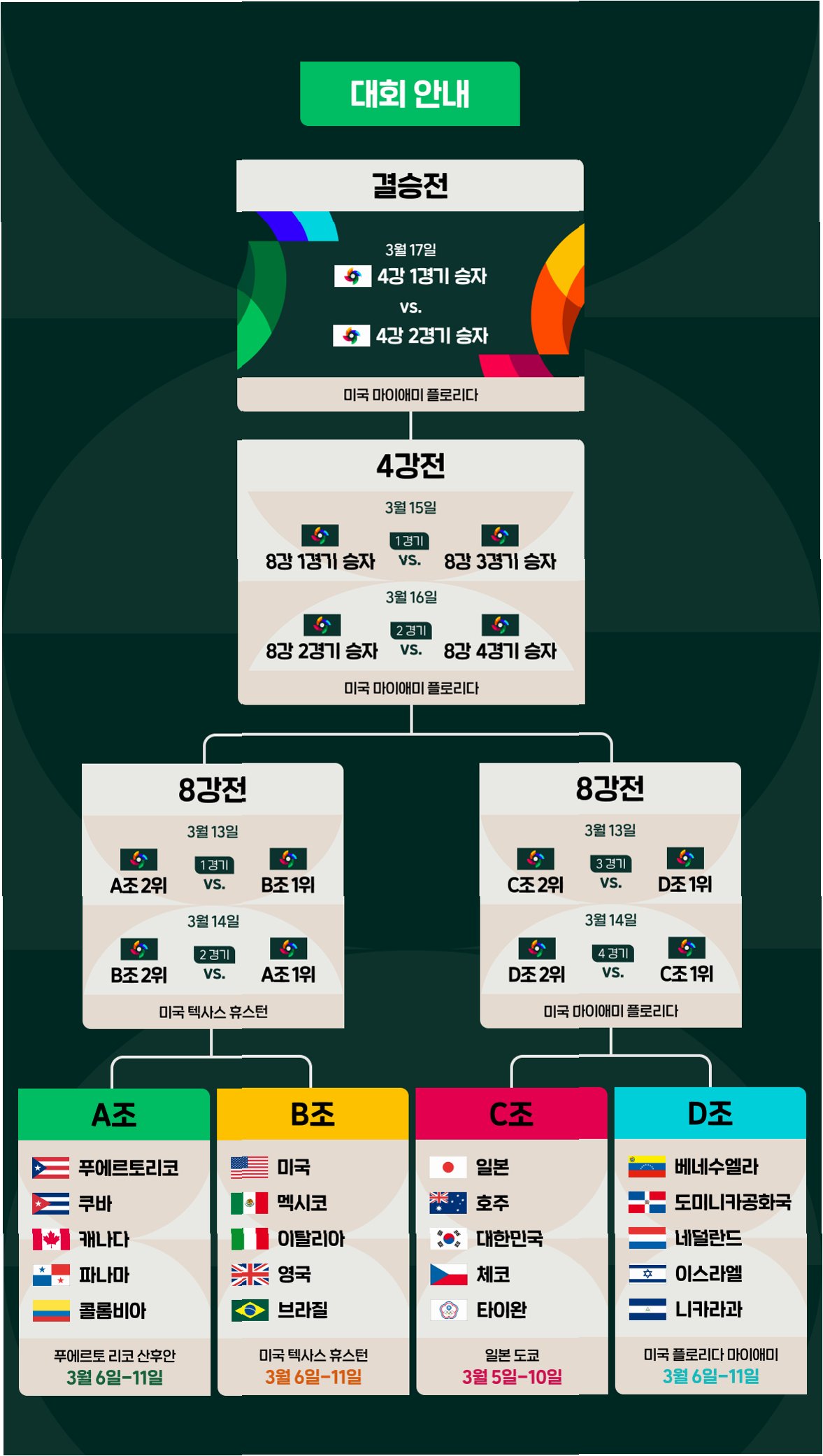 한편, A조에서는 푸에르토리코가 쿠바를 4-1로 꺾고 3연승을 달리며 8강 진출을 확정 지었습니다. 푸에르토리코는 지난 2013년과 2017년 WBC 대회에서 연속 준우승을 차지했던 저력이 있는 팀입니다. 쿠바는 2승 1패로 A조 2위를 기록하게 되었습니다.