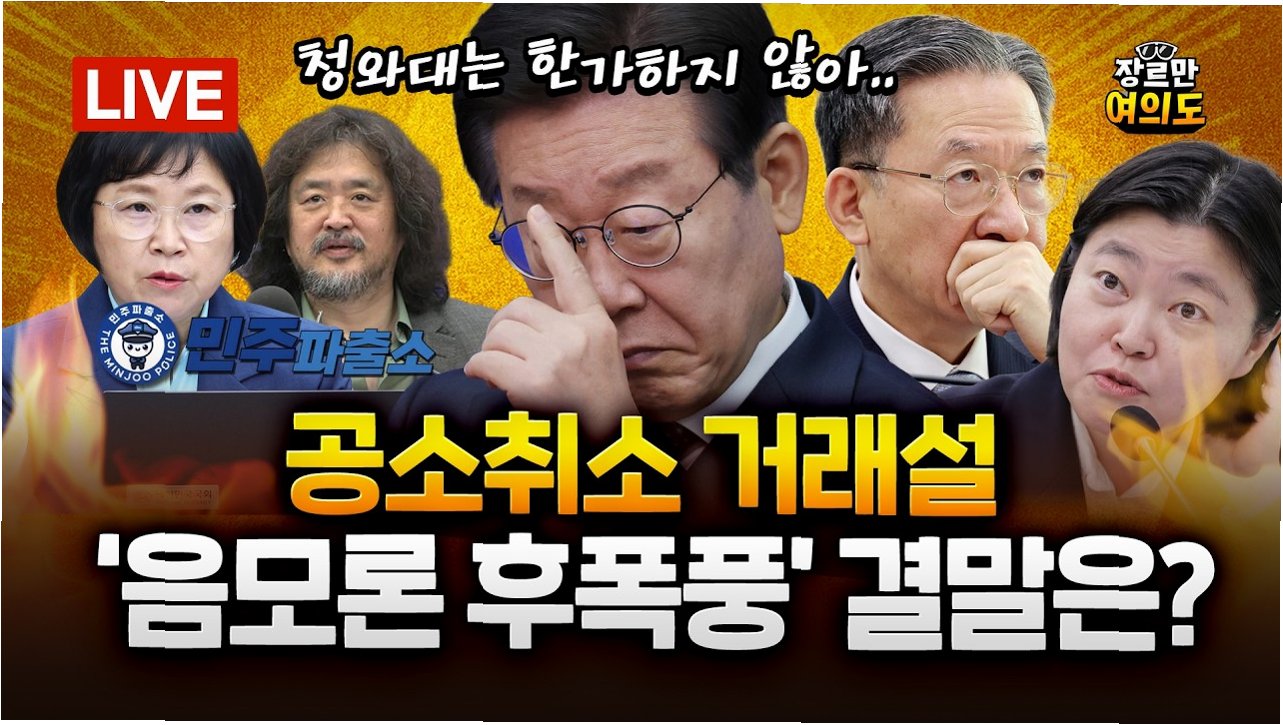 장인수 씨는 김어준 씨의 유튜브 채널에 출연하여 '단독 보도'라며 '대통령 공소 취소 거래설'을 주장했습니다. 그는 대통령 최측근이 고위 검사 다수에게 '공소 취소해 달라'는 취지의 말을 전달했다고 언급했습니다.