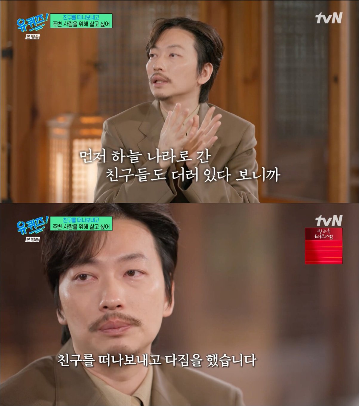 배우 이동휘가 tvN 예능 프로그램 '유 퀴즈 온 더 블럭'에 출연하여 먼저 세상을 떠난 동료 배우 고(故) 나철을 회상하며 뜨거운 눈물을 보였습니다. 그는 '하늘나라로 간 친구들을 떠나보내고 운구를 마치고 돌아온 날, 내 주변 사람들을 더 챙기며 살자고 다짐했다'며 깊은 슬픔을 드러냈습니다. 나철 배우는 지난 2023년 1월, 36세의 젊은 나이에 건강 악화로 갑작스럽게 세상을 떠났습니다.