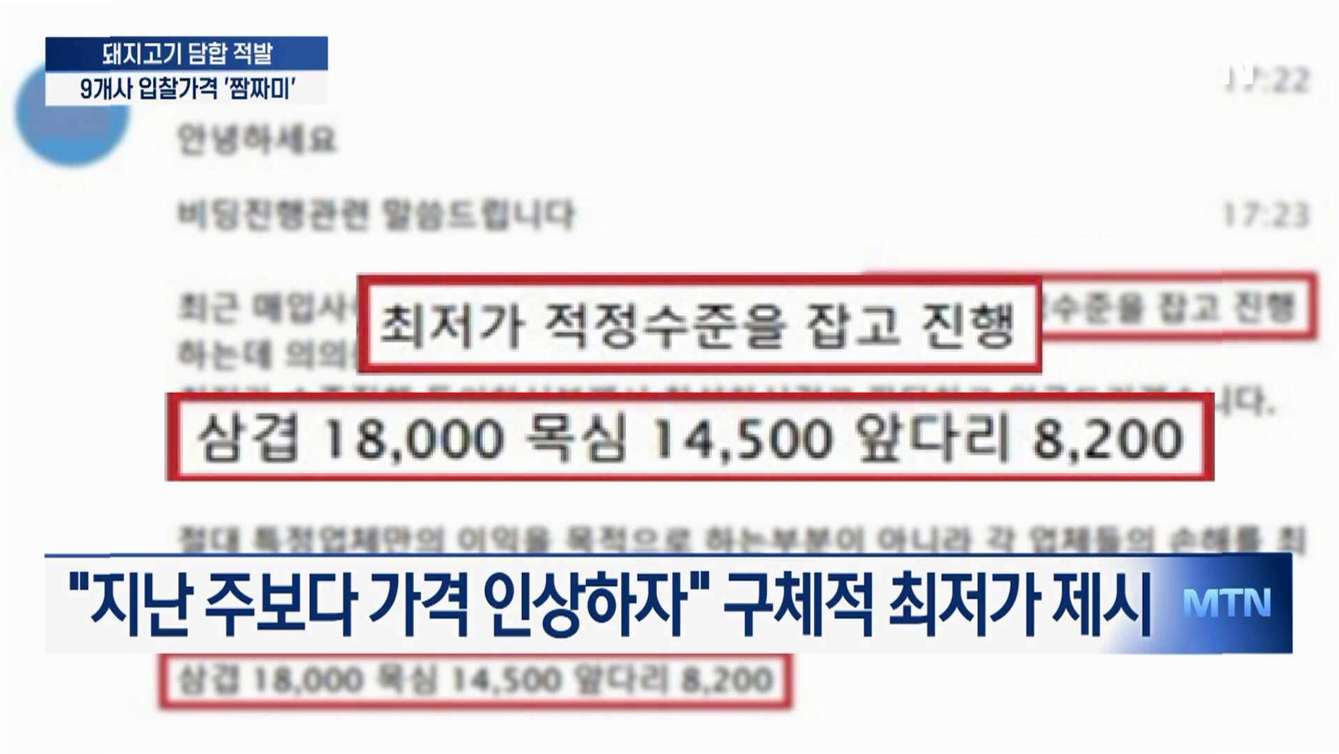 대형마트에 돼지고기를 납품하는 육가공업체 9곳이 가격 담합 혐의로 공정거래위원회에 적발되었습니다. 이들은 텔레그램을 통해 최저가 수준을 정하고 손해를 최소화하자는 등의 대화를 나누며 입찰 가격을 조율했습니다. 삼겹살 등 부위별 가격 인상에 대한 합의도 이루어졌습니다. 이러한 담합 행위로 인해 소비자들은 돼지고기를 더 비싼 가격에 구매해야 하는 피해를 입었습니다.