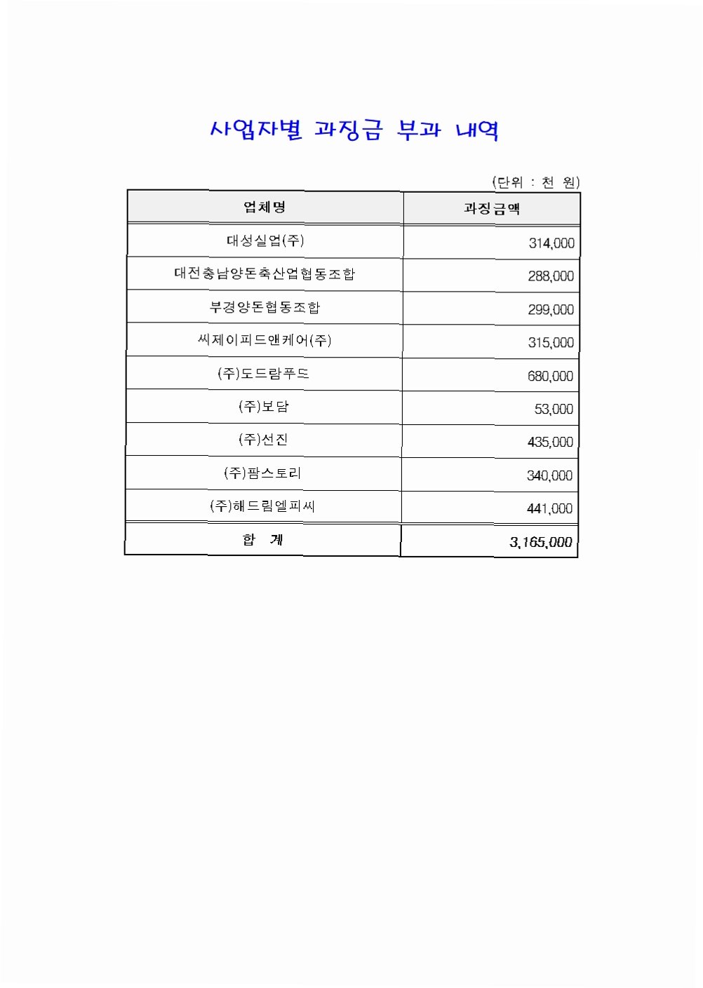 A.공정거래위원회는 담합에 가담한 9개 육가공업체에 시정명령과 함께 총 31억 6천500만 원의 과징금을 부과했으며, 6개 법인은 검찰에 고발되었습니다.