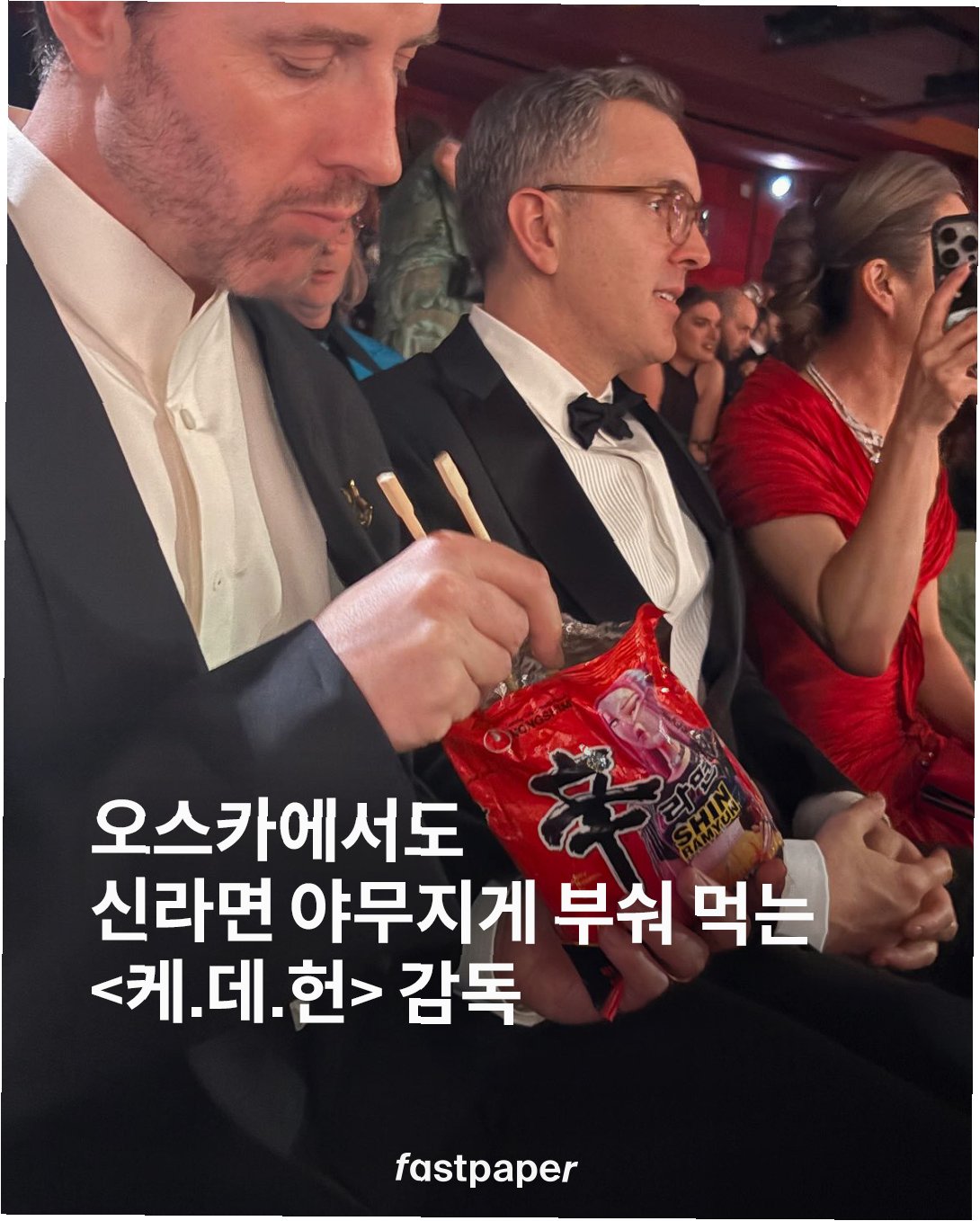 아카데미 시상식에서 '케데헌' 감독이 신라면을 즐기는 모습이 포착되며 큰 화제가 되었습니다. 넷플릭스와 협업한 특별한 신라면과 함께, '케데헌'의 수상 소식, 그리고 한국적인 요소가 가미된 축하 무대까지 더해져 시상식은 더욱 풍성한 볼거리를 제공했습니다.